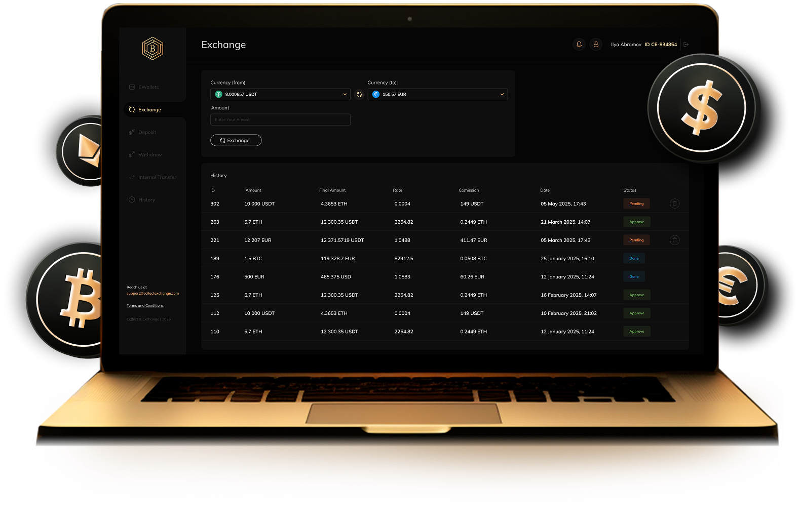 Collect&Exchange est une plateforme fintech internationale spécialisée dans les paiements, le change de devises et l’infrastructure crypto.